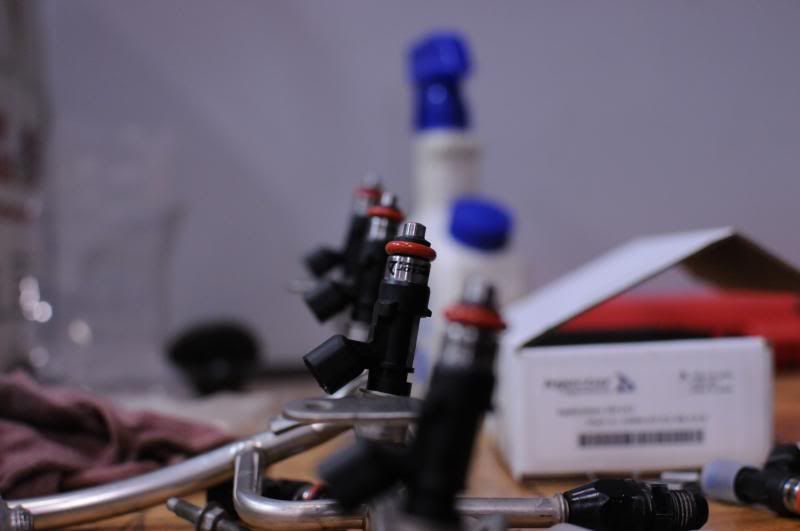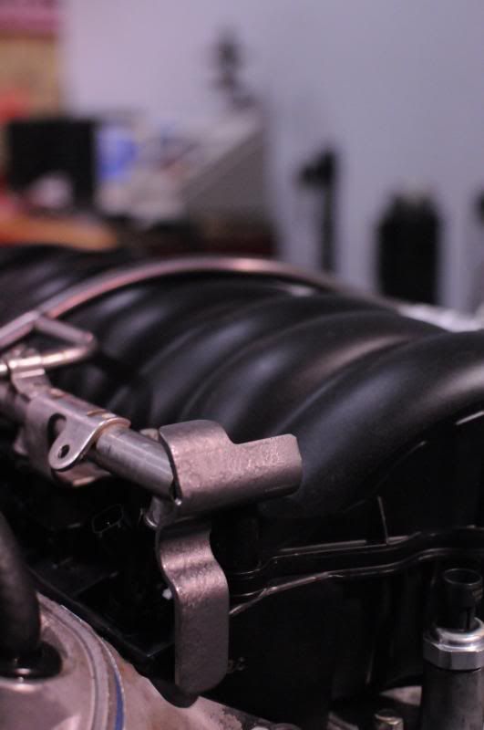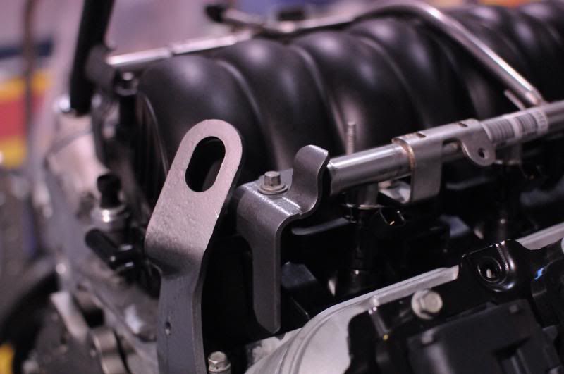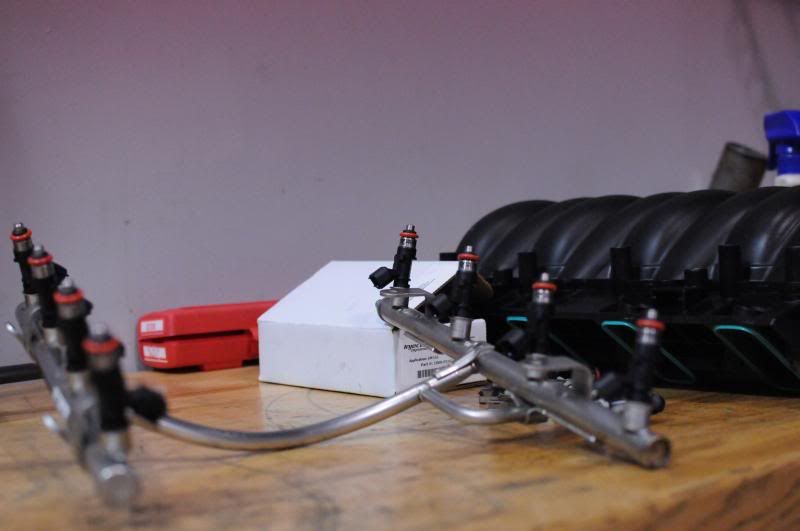 Today I got some more prep work done on the engine. First things first was to port the intake a little more, then clean it, and install the fuel rails and injectors. I'm still on this painting kick, so I painted some more brackets so they match the other paint work I've done so far.